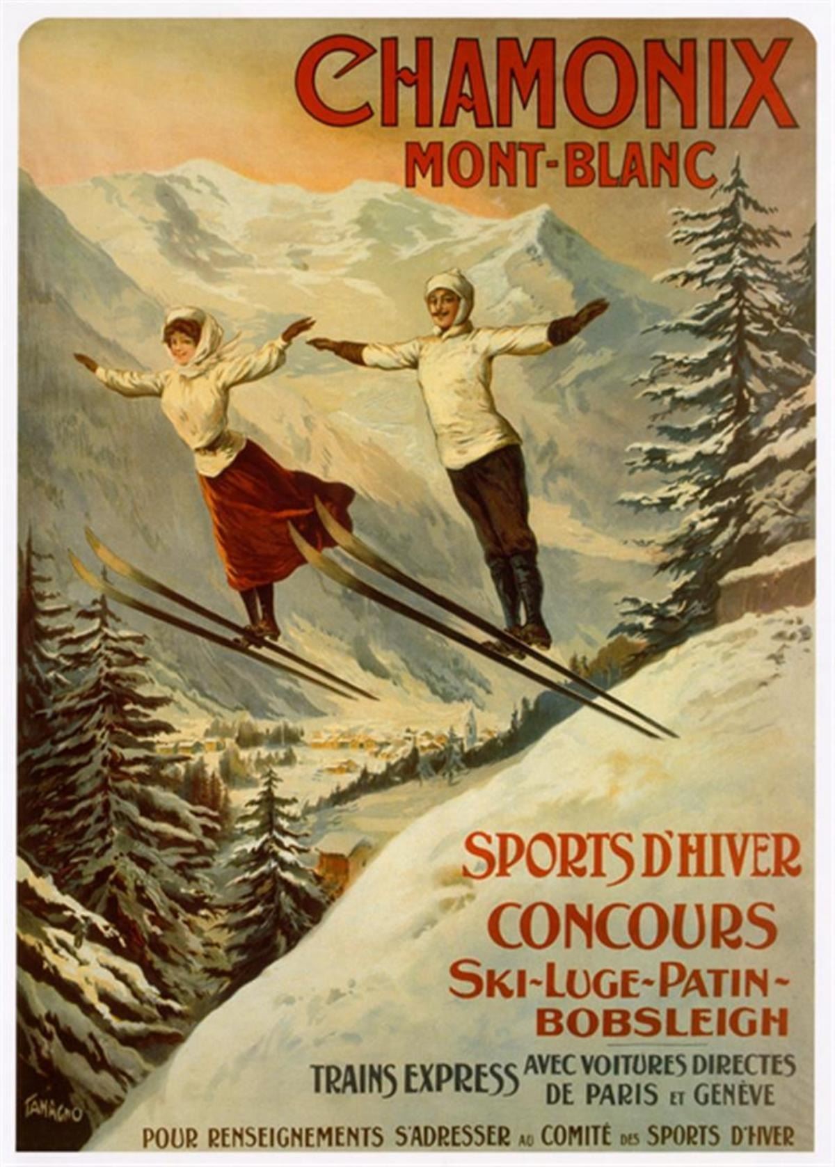 Artist: Francisco Tamajno Title: Chamonix Montblanc Medium: Fine Art Giclee on Canvas Image Size: Approximately 32 inches x 23 inches Unframed on Unstretched Canvas Details: Beautiful Reproduction Giclee on Canvas Biography: Very little biographical information about Tamajno can be found. It is well documented that he was one of the artists under contract with theprinter Camis, who claimed to have the largest printing presses in the world, and certainly retained major companies as clients. Throughout his career Tamajno designed many different posters for Terrot, a company which, from very early on, seemed to have a clear advertising concept: speed. For each of his posters for the company, Tamajno illustrates a humorous story of a woman outpacing other forms of transportation, such as bicycles, cars and trains. Tamajno's images are well balanced in design and print.