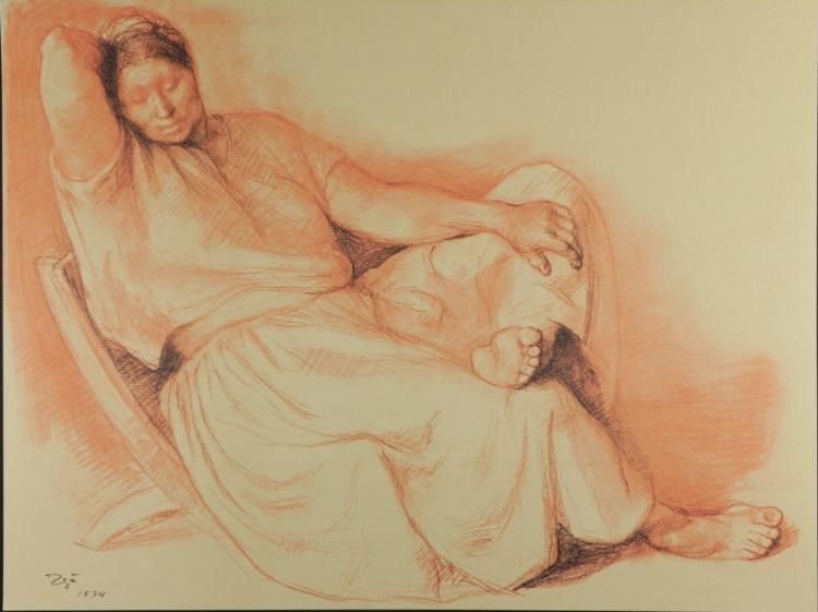 Artist: Francisco ZunigaTitle: Juanita en un Bataque (Juanita in a Small Armchair)Medium: Offset lithograph on paperEdition: Out of 2000 - From the portfolio titled 20 DibujosYear: 1974Size: 18 3/4" x 24 3/4"Condition: ExcellentBiographyFrancisco Zuniga (1912-1998) was born in Costa Rica, and he studied drawing, sculpture, and engraving at the School of Fine Arts in San Jose. Along with his sculpture and prints, he did several large commissions, including the stone reliefs on the Secretaria de Comunicaciones in Mexico City. His art is well recognized today for its loving representations of the Central American people and their traditions. Zuniga is well-represented in major museum collections, including the Museum of Modern Art in New York City, the Phoenix Art Museum, Harvard University, Ponce Art Museum and the Hirshhom Museum and Sculpture Garden in Washington, D.C.