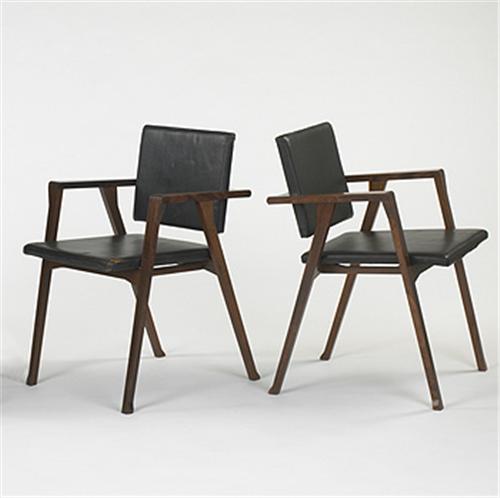 Franco Albini Luisa dining chairs, set of six Poggi Italy, 1950 rosewood, leather 22"w x 23"d x 30"h This chair was awarded the Compasso d'Oro in 1955. Literature: Repertorio 1950-1980, Gramigna, pg. 59