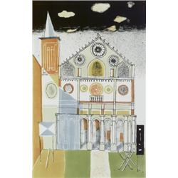 Franco Gentilini (Italian 1909-1981), Venditrice di Frutta e Cattedrale and View of a Cathedral...