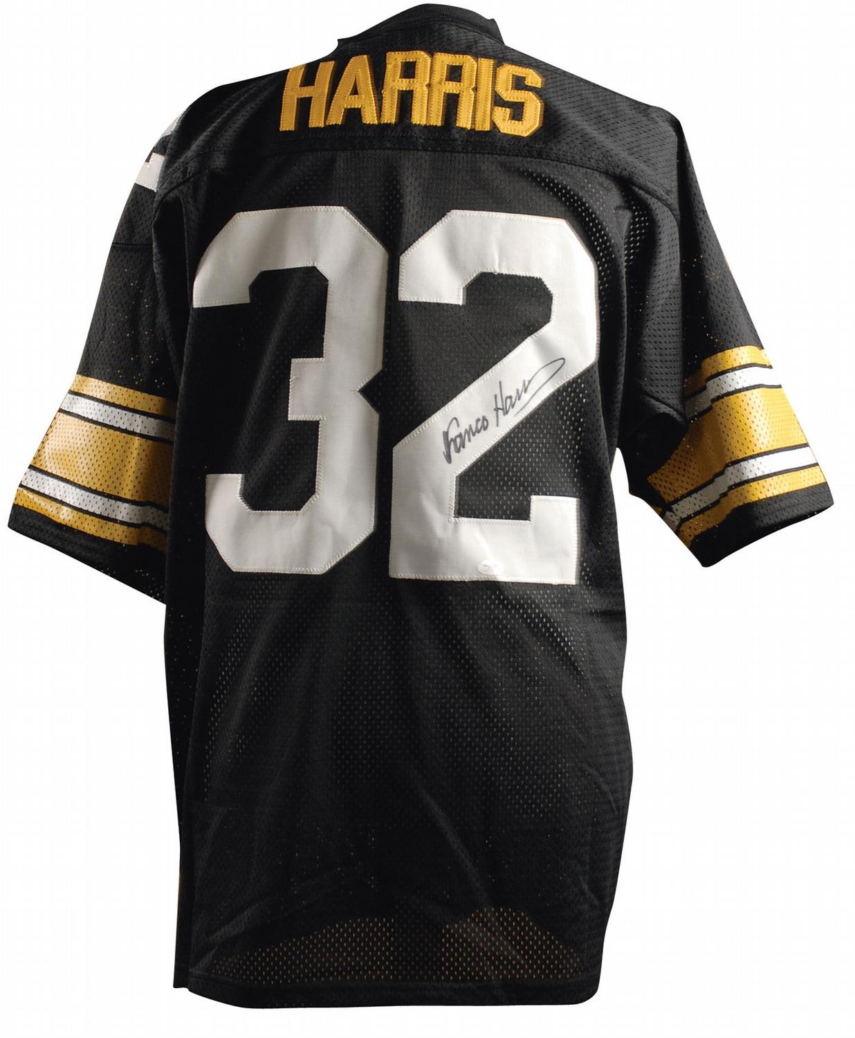 Replica Pittsburgh Steelers football jersey, with sewn on letters and numbers, signed in black felt tip on the number on the back. In very fine condition with a James Spence Authentication label affixed and accompanied by a certificate of authenticity from JSA.