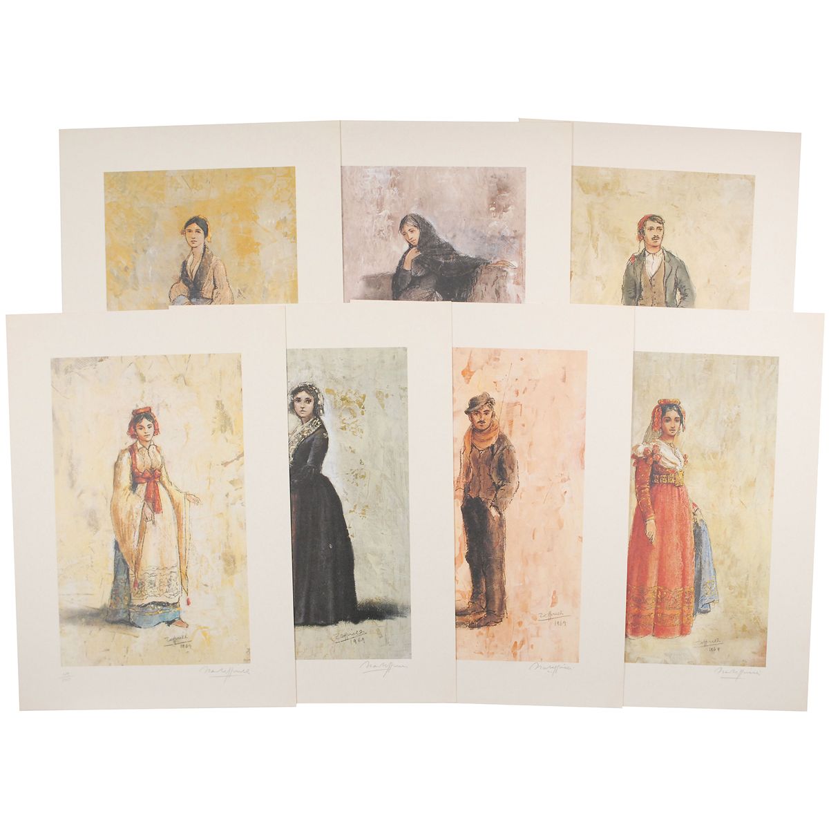 Italian director and producer of films and television best known for Romeo and Juliet and The Taming of the Shrew. Limited edition lithograph suite, numbered 129/500, consisting of seven color lithographs, 15 x 21.25, each signed in pencil in the lower right by Zeffirelli. Also includes an unsigned print explaining that the images are Zeffirelli’s costume renderings for the Metropolitan Opera production of Pietro Mascagni’s Cavalleria Rusticana. Beautifully presented in a hardbound slipcase. In overall very fine condition.