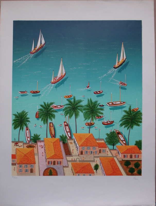 Another delightful scene of Fanch’s native Brittany, Le Planche de Deauville is a 30x22 in. lithograph, circa 1980’s, signed in pencil in an edition of 275 examples. Domestic shipping $60. International depends upon location.