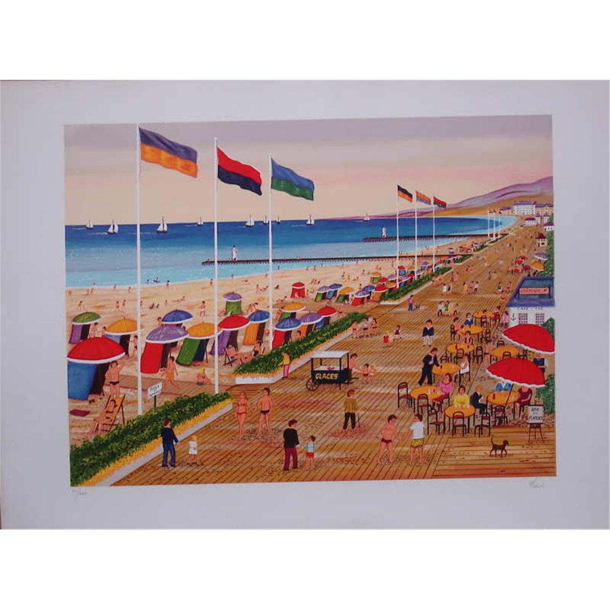 Another delightful scene of Fanch’s native Brittany, Le Planche de Deauville is a 22x30 in. lithograph, circa 1980’s, signed in pencil in an edition of 275 examples. Domestic shipping $20. International depends upon location.