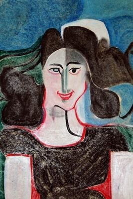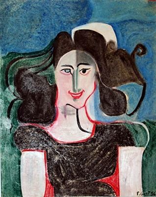 Oil on paper in the manner of Francoise Gilot - Ms Leonella, bearing the signature. Unframed dimensions approx 17 x 13.