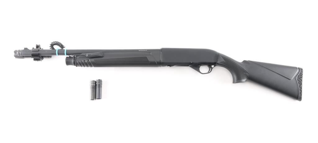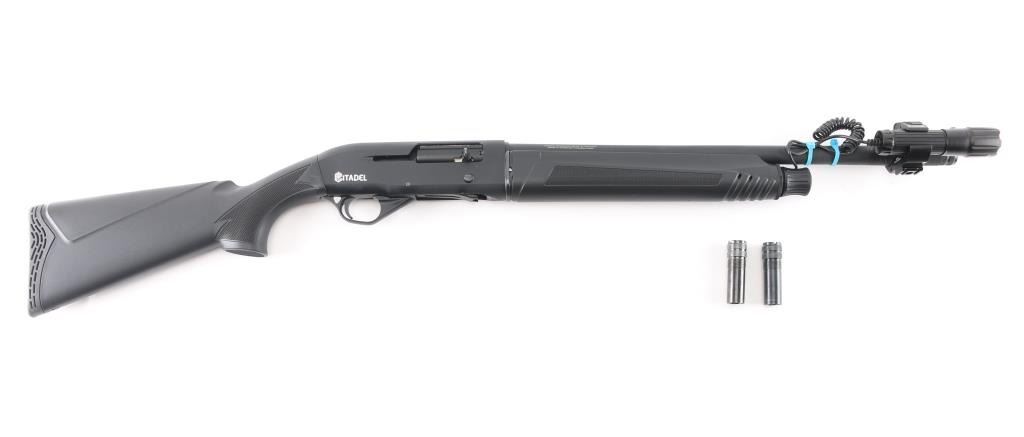 SN: 21FW-1274. Turkish made magazine fed, semi-automatic shotgun imported by Legacy Sports Reno. 20" barrel , 3" 12 Ga. chamber, screw in CLY choke installed, blade sight. Matte black polymer body with fixed stock. Large charging knob, action is smooth, bore is pristine, like new condition. Iprotec tactical flashlight installed on barrel, in good working order. Comes with 2 extra chokes, Full, and Mod. 14" LOP.NRA Condition-Excellent. Modern firearm.
