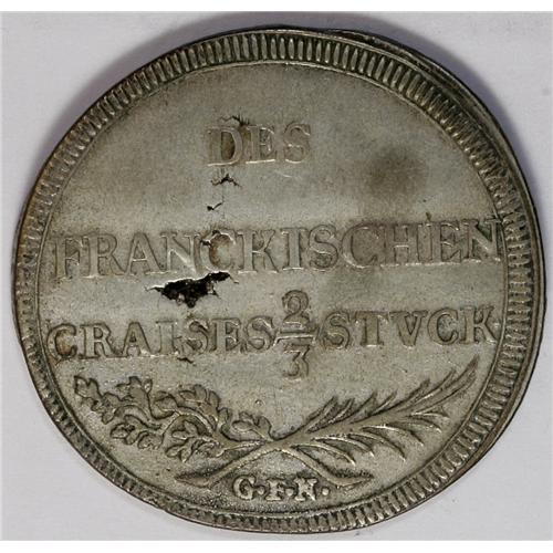 <B>Franconian Circle. 2/3 Taler 1693-GFN, </B></I>KM21, VF, noticeable flan flaw on the reverse.