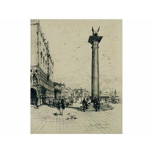 Canadian MSA [1876-1941] RIVA DEGLI SCHIAVONI, VENICE; 1913 etching on paper; ed. #15/60 13.5 x 10.5 in. (34 x 27 cm) signed, dated & editioned; titled & dated in the plate Note: Illustrated p. 160 "Caroline and Frank Armington, Canadian Painter-Etchers in Paris" (Braide & Parke-Taylor).