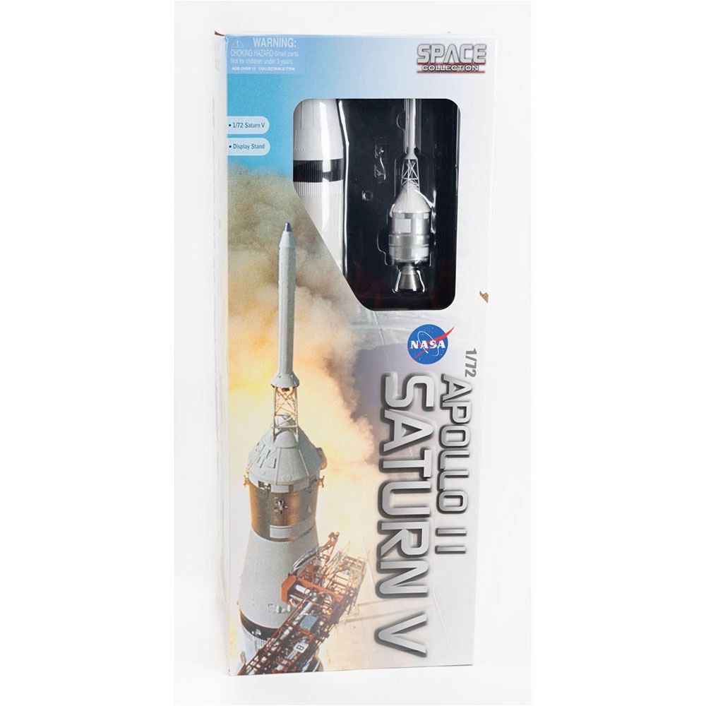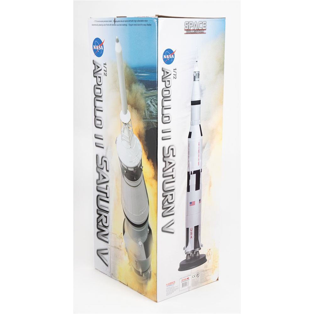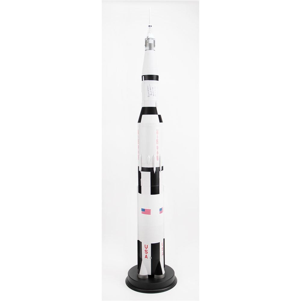 Dragon Models 1:72 scale replica model of the Saturn V rocket that carried the Apollo 11 mission to the moon. The four-stage model measures 60è in height and is signed on the third stage in black felt tip, ‰ÛÏFirst to the moon, Frank Borman, Apollo 8 CDR, Dec. 21-27, 1968.‰Û Includes a display stand and the original box. In fine condition.