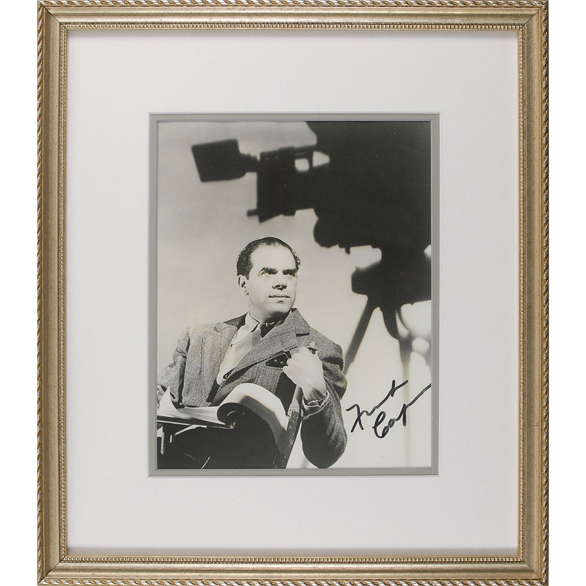 Glossy 7.25 x 9.25 photo of Capra with a large shadow of a camera in the background, signed in black felt tip. Double-matted and framed to an overall size of 13.5 x 15.5. In fine condition.