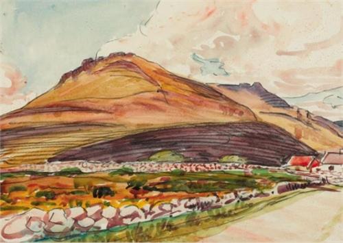 MOUNTAIN LANDSCAPE watercolour over pencil on paper <BR>25 by 36cm., 10 by 14in. <BR><b>Provenance:</b><BR> The artist's estate