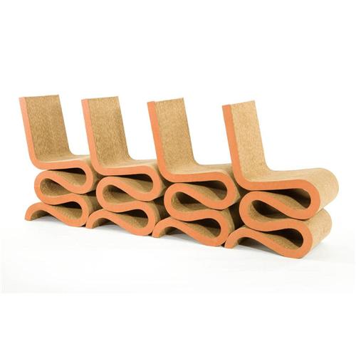 From 1969-1973 Gehry developed a line of furniture from corrugated cardboard. The "Easy Edges" line, in which this design originally debuted, was first sold nationwide at Bloomingdales.