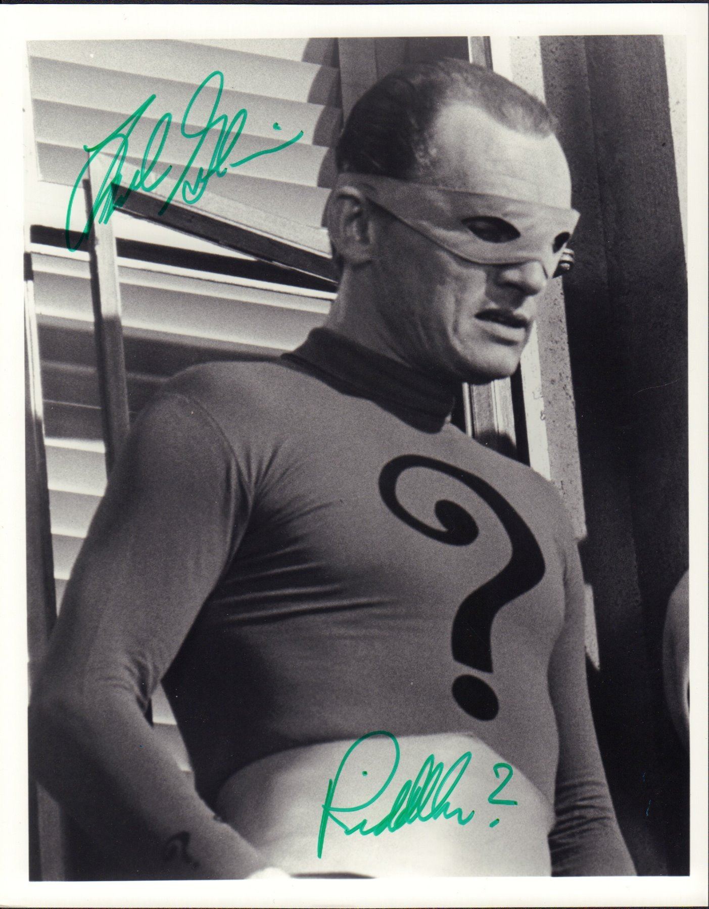 Black and white 8x10 photograph from the television series Batman signed by Frank Gorshin as The Riddler. All items come with a certificate of authenticity good for the life of the piece.