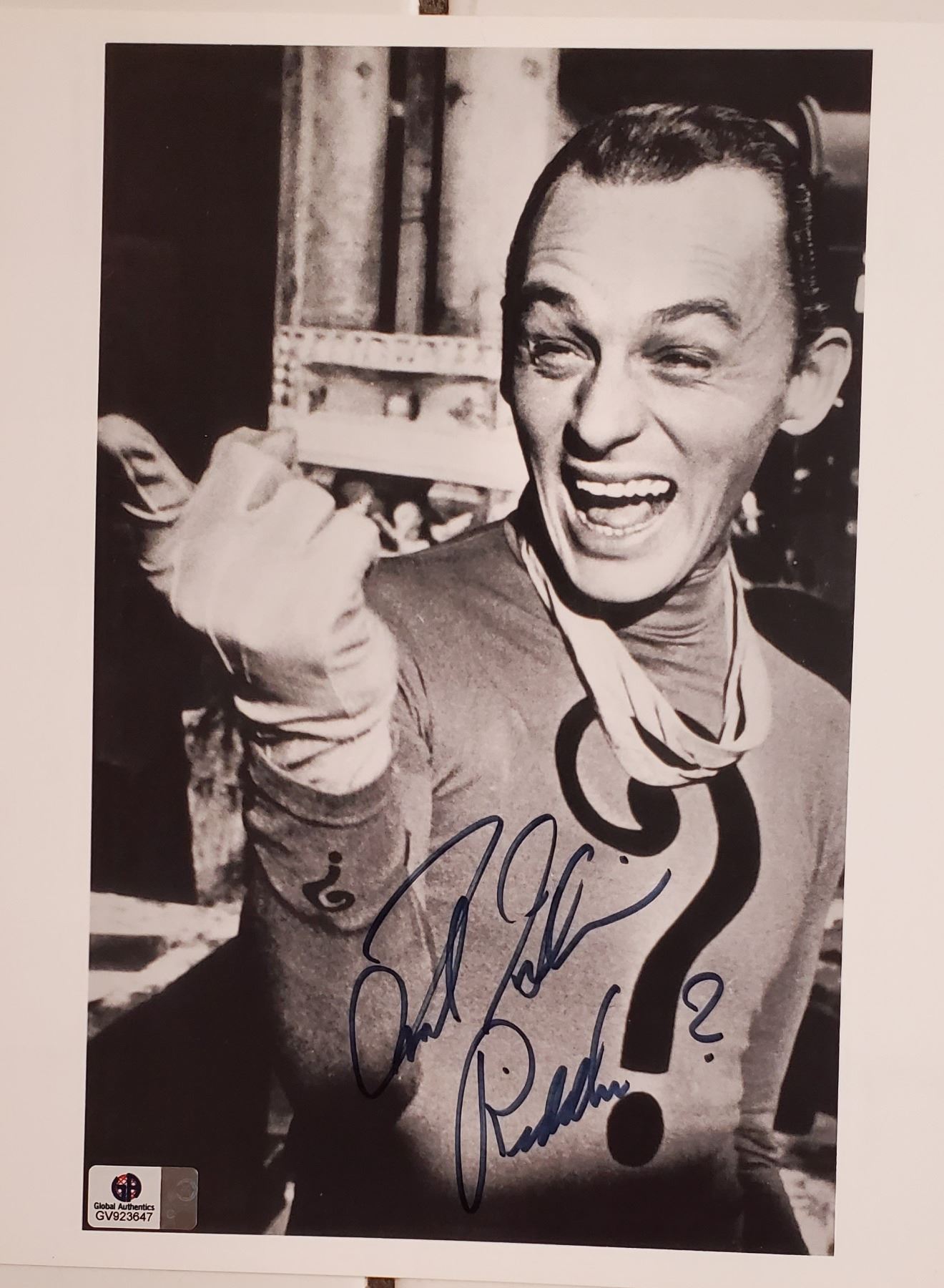 An 8” x 10” photograph signed by Frank Gorshin. The autograph is authenticated by Global Authentics who issued a COA numbered GV 923647.