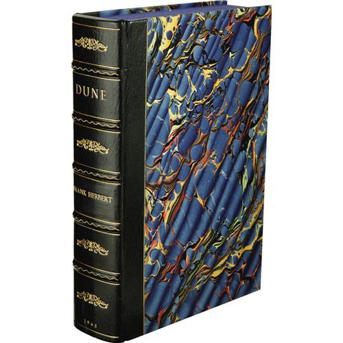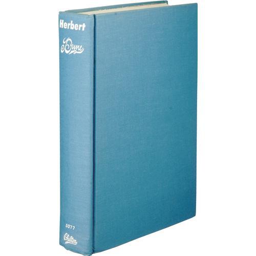 <B>Frank Herbert: <I>Dune</B></I></B></I> <B>First Edition.</B></I> (Philadelphia: Chilton Books, 1965), first edition, first printing, 412 pages, baby blue boards with white lettering on spine, 8vo (6" x 9.25"), first edition dust jacket (in protective Mylar). Herbert's ecology-conscious interstellar opus has sold over ten million copies since 1965, establishing it as the best-selling science fiction novel ever published, and spawning a vast number of sequels. The story of Paul Atreides and his family's political struggles on planet Arrakis was the joint winner of the 1966 Hugo Award and the winner of the first Nebula Award for Best Novel in 1965. A 1975 poll of <I>Locus</B></I> magazine readers chose <I>Dune</B></I> as the "all-time best science-fiction novel". And <I>Dune</B></I>'s influence on popular culture can be seen in a number of subsequent works, such as <I>Star Trek,</B></I> <I>Star Wars,</B></I> <I>The Matrix</B></I> films, and Robert Jordan's <I>The Wheel of Time</B></I> series, among many others. This copy of the first printing of the first edition of <I>Dune</B></I> comes housed in a gorgeous Heritage Bindery banded quarter leather slipcase with blue marbled boards. The book itself is in fine condition, with only minimal wear to the edges of the dust jacket. The binding is tight; the text block is very clean, and does not appear to have ever been read! A rare opportunity to obtain a pristine copy of Herbert's masterpiece in its very first published form. <I>From the Ventura Collection.</B></I><BR><BR><b>Shipping:</b> Books & Catalogs (<a target="_blank" href="http://www.heritageauctions.com/common/shipping.php">view shipping information</a>)