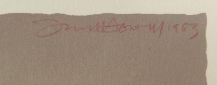 Yellow leaves give a hint at the coming spring season, as the figure with long hair appears to feel it in the breeze. * * Artist: Frank Howell Signature: In red pencil, upper rightTitle: Spring PromiseMedium: Lithograph on paperEdition: 148/200Year: 1983Sheet size: 10 1/2 x 13 1/2 inchesPresentation: Shrink-wrapped on foam coreCondition: Excellent * * * * Biography: * Frank Howell (1937- 1997) was born in Sioux City Iowa, and studied art and writing at the University of Northern Iowa, the University of Iowa, and the Chicago Art Institute. His subjects focus on Native American people and landscapes, most with a wind conveying the passege of time, from the past, present, and future. In addition to paintings and prints, Howell has written many books, including Gifts of the Crow Messengers, and illustrated others. His own gallery continues to represent Southwestern artists. Howell has exhibited at museums and galleries throughout the U.S. and Mexico, and his work continues to be influencial for all those who love the art of the Southwest. * *