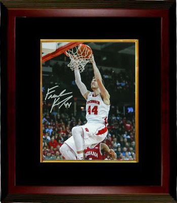 Ahead of the 2014 season Frank Kaminsky was named the Big Ten preseason player of the year. The Badgers were unanimously picked to win the Big Ten Championship. The Badgers ended up winning both the Big Ten regular season and the Big Ten tournament.Kaminsky was named consensus first-team All-American. On March 31, 2015 he was named the National Association of Basketball Coaches Player of the Year. On April 3 he was named Associated Press College Basketball Player of the Year, the first Wisconsin player to receive the award. He also received the Oscar Robertson Trophy as the United States Basketball Writers Association College Player of the Year. On April 5, he was named the Naismith College Player of the Year. On April 10, he won both the John R. Wooden Award and Kareem Abdul-Jabbar Center of the Year award. Frank Kaminsky has hand signed this Wisconsin Badgers 16x20 Photo. Schwartz Sports Hologram and Certificate of Authenticity from Athlon Sports. Custom Black Mat and Premium Mahogany Color Framed as shown.