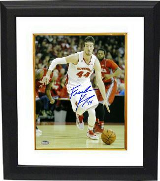 Ahead of the 2014 season Frank Kaminsky was named the Big Ten preseason player of the year. The Badgers were unanimously picked to win the Big Ten Championship. The Badgers ended up winning both the Big Ten regular season and the Big Ten tournament.Kaminsky was named consensus first-team All-American. On March 31, 2015 he was named the National Association of Basketball Coaches Player of the Year. On April 3 he was named Associated Press College Basketball Player of the Year, the first Wisconsin player to receive the award. He also received the Oscar Robertson Trophy as the United States Basketball Writers Association College Player of the Year. On April 5, he was named the Naismith College Player of the Year. On April 10, he won both the John R. Wooden Award and Kareem Abdul-Jabbar Center of the Year award. Frank Kaminsky has hand signed this Wisconsin Badgers 16x20 Photo. Schwartz Sports Hologram and Certificate of Authenticity from Athlon Sports. Custom White Mat and Premium Black Frame as shown.