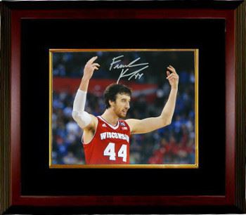 Ahead of the 2014 season Frank Kaminsky was named the Big Ten preseason player of the year. The Badgers were unanimously picked to win the Big Ten Championship. The Badgers ended up winning both the Big Ten regular season and the Big Ten tournament.Kaminsky was named consensus first-team All-American. On March 31, 2015 he was named the National Association of Basketball Coaches Player of the Year. On April 3 he was named Associated Press College Basketball Player of the Year, the first Wisconsin player to receive the award. He also received the Oscar Robertson Trophy as the United States Basketball Writers Association College Player of the Year. On April 5, he was named the Naismith College Player of the Year. On April 10, he won both the John R. Wooden Award and Kareem Abdul-Jabbar Center of the Year award. Frank Kaminsky has hand signed this Wisconsin Badgers 8x10 Photo. Schwartz Sports Hologram and Certificate of Authenticity from Athlon Sports. Custom Black Mat and Premium Mahogany Color Framed as shown.