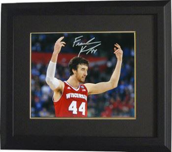 Ahead of the 2014 season Frank Kaminsky was named the Big Ten preseason player of the year. The Badgers were unanimously picked to win the Big Ten Championship. The Badgers ended up winning both the Big Ten regular season and the Big Ten tournament.Kaminsky was named consensus first-team All-American. On March 31, 2015 he was named the National Association of Basketball Coaches Player of the Year. On April 3 he was named Associated Press College Basketball Player of the Year, the first Wisconsin player to receive the award. He also received the Oscar Robertson Trophy as the United States Basketball Writers Association College Player of the Year. On April 5, he was named the Naismith College Player of the Year. On April 10, he won both the John R. Wooden Award and Kareem Abdul-Jabbar Center of the Year award. Frank Kaminsky has hand signed this Wisconsin Badgers 8x10 Photo. Schwartz Sports Hologram and Certificate of Authenticity from Athlon Sports. Custom Black Mat and Premium Black Color Framed as shown.