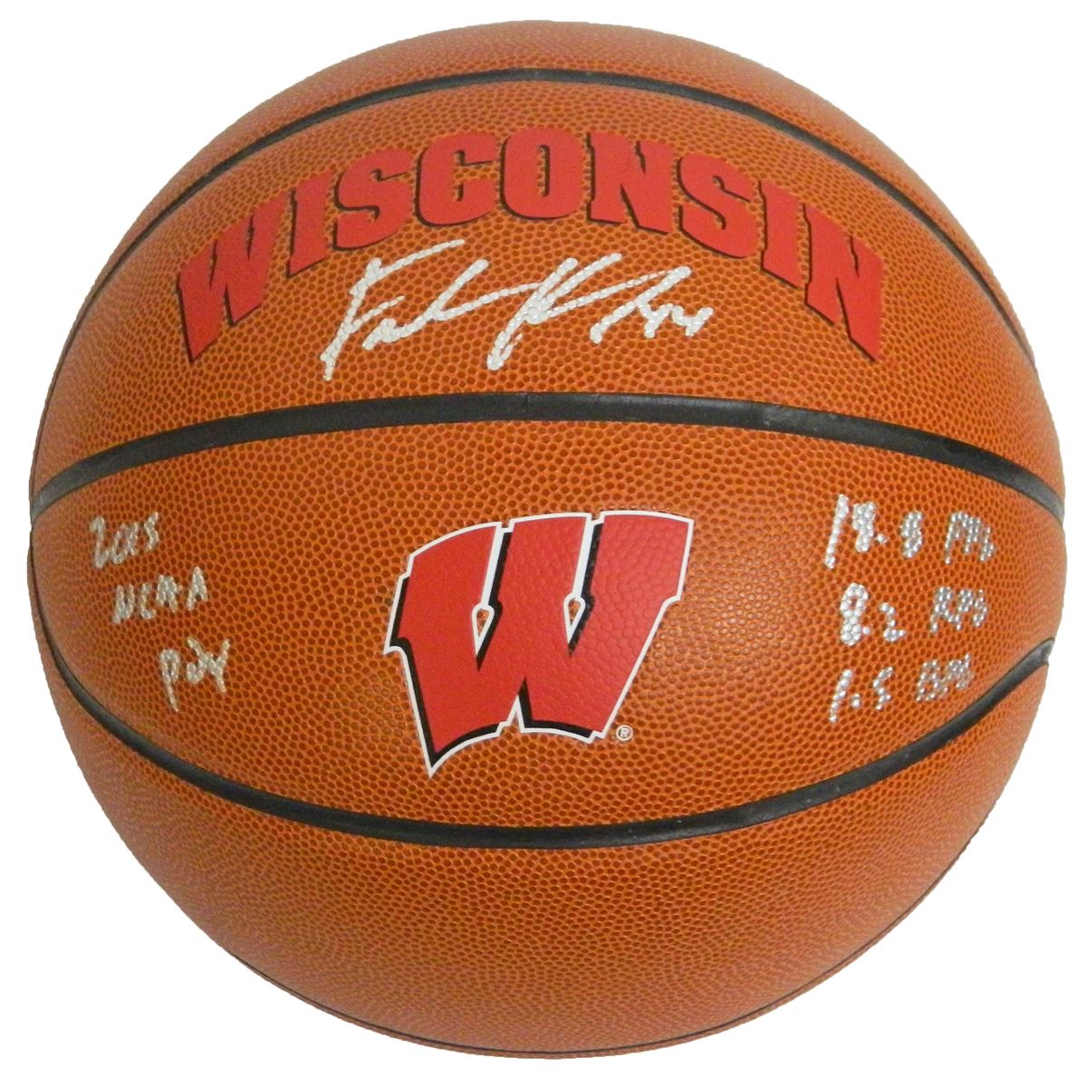 Frank Kaminsky signed Wisconsin Badgers Rawlings brown logo basketball with '2015 NCAA POY, 18.8 PPG, 8.2 RPG, 1.5 BPG' inscriptions. Item comes with a Schwartz Sports Memorabilia tamper-proof numbered hologram and Certificate of Authenticity which can be verified online.