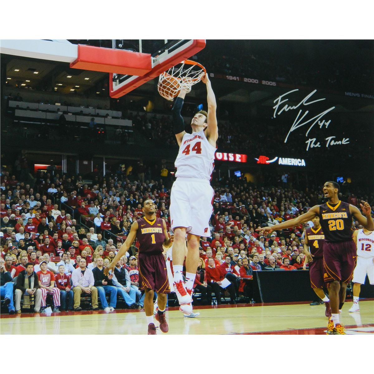 Frank Kaminsky signed Wisconsin Badgers two hand slam dunk action 16x20 photo with 'The Tank' inscription. Item comes with a Schwartz Sports Memorabilia tamper-proof numbered hologram and Certificate of Authenticity which can be verified online.
