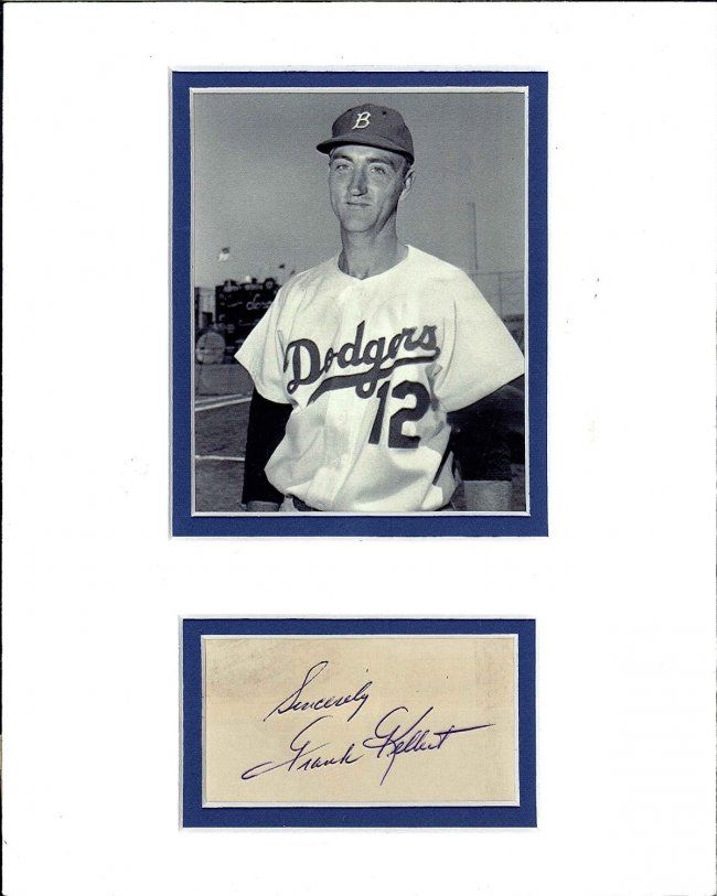 JSA Frank Kellert cut signature matted with a photograph. This is a very strong signature with a blue and white double matting theme. This piece measures 8 x 10 inches. Frank William Kellert (July 6, 1924, in Oklahoma City, Oklahoma ? November 19, 1976, in Oklahoma City, Oklahoma) was a Major League Baseball first baseman. He was an alumnus of Oklahoma State University. Signed by the St. Louis Cardinals as an amateur free agent in 1949, Kellert would make his Major League Baseball debut with the St. Louis Browns on April 18, 1953, and appear in his final game on September 29, 1956. The book Carl Erskine's Tales from the Dodgers Dugout: Extra Innings (2004) includes short stories from former Dodger pitcher Carl Erskine. Kellert is featured in a number of these stories.