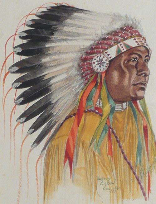 Frank Knickenbocker (20th Cent), Gouache "Woodward Big Bow Kiowa Indian 1903" Signed middle right 1957 11 3/4" x 9"