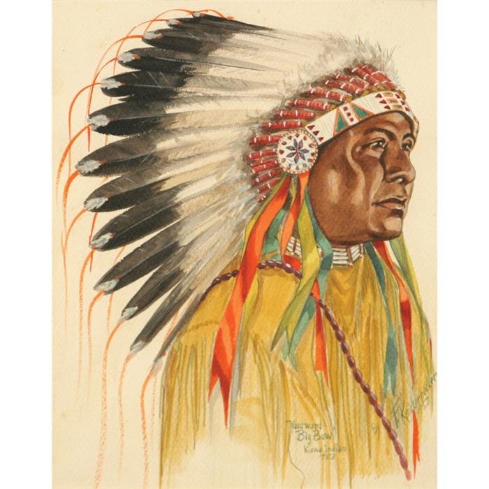 Frank Knickerbocker (20th century) Woodward Big Bow, Kiowa Indian Portrait. 11 1/4" x 9" watercolor Signed lower right. (est $400-800)