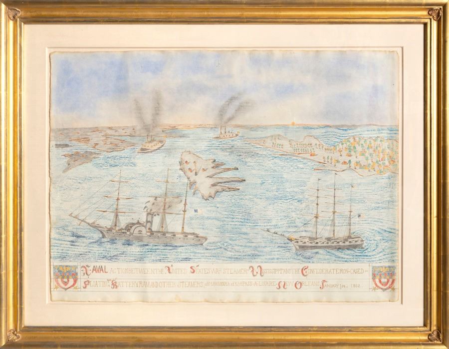 Frank Leslie, Naval Action, Colored Pencil and Graphite on Paper