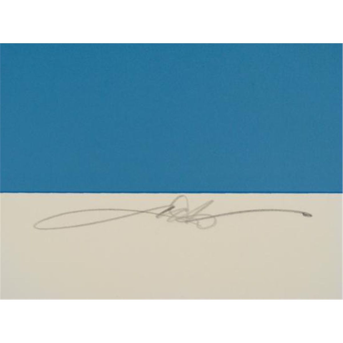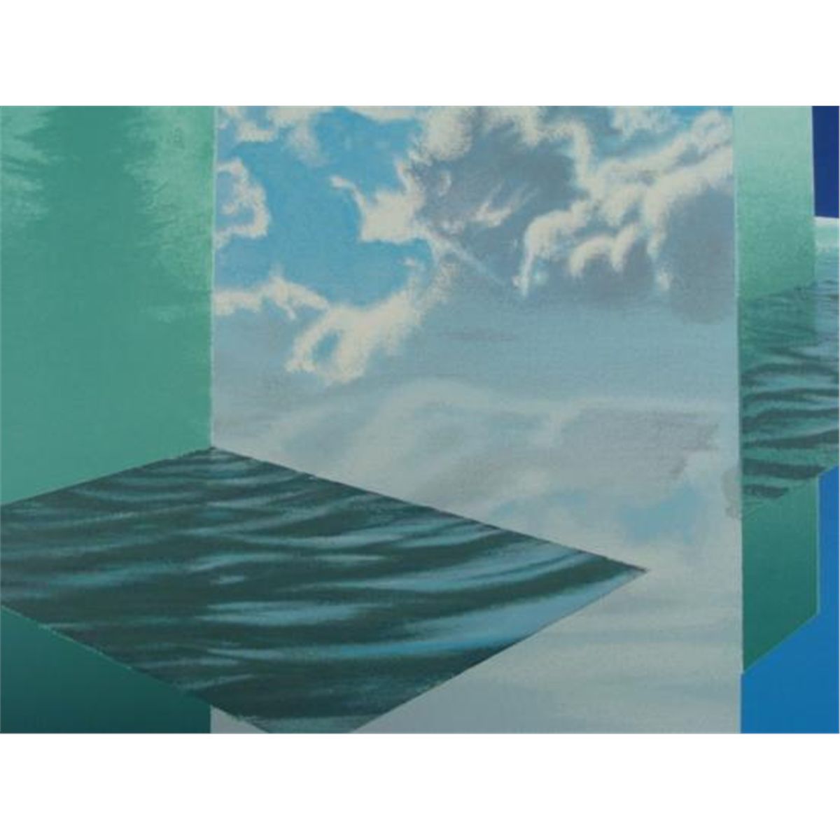 This very representative surreal landscape by well-known artist Frank Licsko's (Hungary, b. 1946) shows all of the artist's favorite and notable motifs — planes floating and receding into one another, forms within forms, and everything reflecting and refracting light: * Title: "Triple Plane" * 1986 * Serigraph on paper * Image size: 26 inches x 33 inches * Sheet size: 30 inches x 36 inches * Signed and numbered * Edition: 250 numbered; 90 Roman and 35 APs * Excellent condition; never mounted, matted or framed * Certificate of Authenticity * Retail gallery price USD 1500 * The highly prized and praised work of Frank Licsko has been shown in many exhibitions and solo shows throughout the world. * * * SPECIAL SHIPPING NOTE: This print will be shipped rolled in a heavy duty mailing tube.