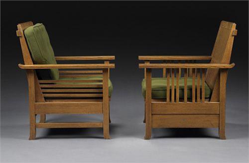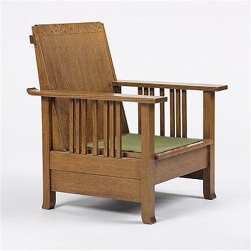 Frank Lloyd Wright in collaboration with George Mann Niedecken armchair from the Gilmore House, Madison, Wisconsin Niedecken-Walbridge USA, 1909 red oak, upholstery 31 w x 31 d x 37.5 h inches Literature: <i>Frank Lloyd Wright Retrospective</i>, Kurokawa, pg. 115 <i>Frank Lloyd Wright and Madison: Eight Decades of Artistic and Social Interaction</i>, Sprague, pg. 50 <i>The Wright State: Frank Lloyd Wright in Wisconsin</i>, Marvel, pg. 50 Exhibited: <i>Frank Lloyd Wright Retrospective</i>, Sezon Museum of Art, Tokyo, January 2- February 18, 1991 <i>The Wright State: Frank Lloyd Wright in Wisconsin</i>, Milwaukee Art Museum, Milwaukee, September 11- November 8, 1992