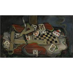 Frank London (1876-1945) Work and Play c.1940 oil on canvas 21.5 x 36 Signed lower right. Framed.
