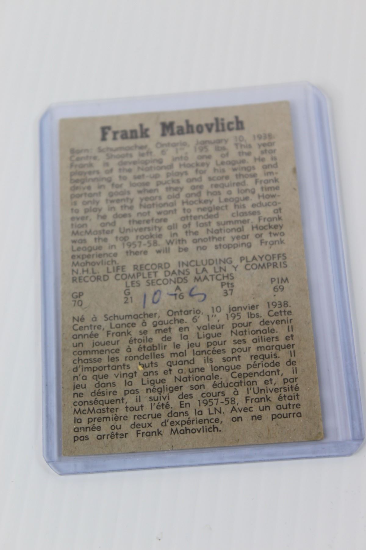 Frank Mahovlich Hockey Card - 1958-1959 - In Protective Card Case