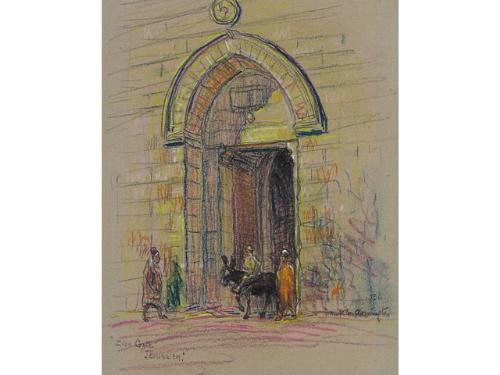 [Canadian 1876-1941] ZION GATE JERUSALEM; 1936 Pastel and coloured pencil on paper 11.5 x 9 ins. Signed, titled & dated