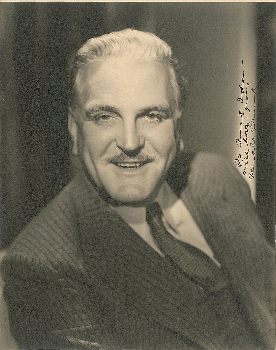 Vintage matte-finish 7.25 x 9.25 photo of Frank Morgan in a charming front-facing pose, signed and inscribed in fountain pen, "To Aunt Ida—with love—from Uncle Frank.” In very fine condition, with trimmed edges.