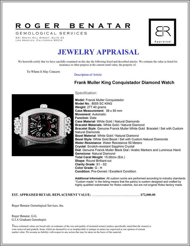 Bracelet Style: Genuine Franck Muller White Gold Bracelet / Set with Custom Natural Diamonds