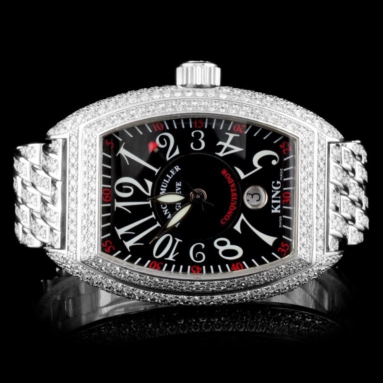 Bracelet Style: Genuine Franck Muller White Gold Bracelet / Set with Custom Natural Diamonds