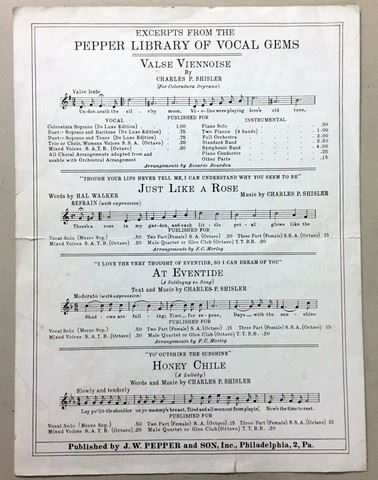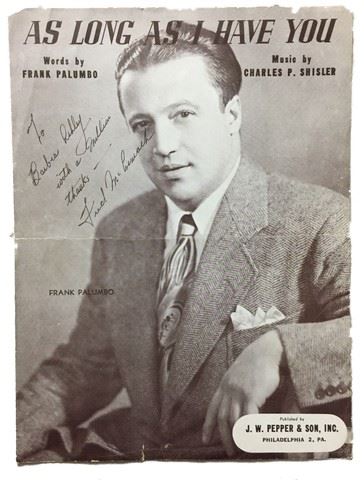 Autographed cover for sheet music, "As Long As I Have You", by Frank Palumbo. Excerpts of The Library of Vocal Gems is on opposite side of cover sheet.