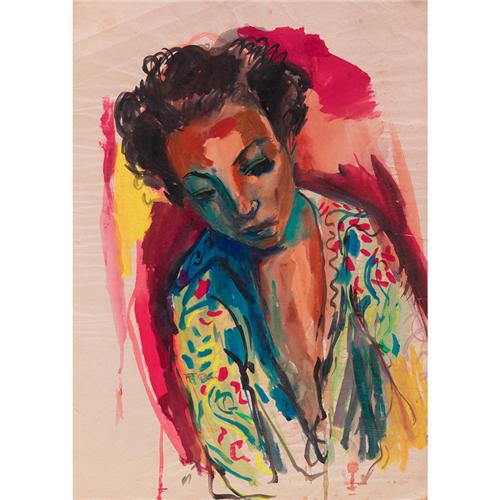 Frank Perri (American, early 20th century), " Portrait of a Woman", c. 1940; watercolor, 23" x 15" , signed . Perri immigrated from Italy to Chicago around 1930. He exhibited at the Carnegie Institute of Art and the Art Institute of Chicago, . He trave