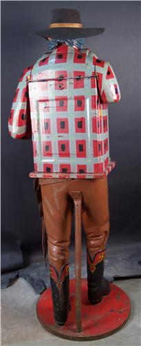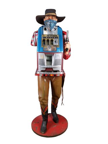 Frank Polk Upright Cowboy "Bandit"  w carved bandana mask  Very Rare  One Armed Bandit w 5 cent Mills Hi-Top Machine w/keys