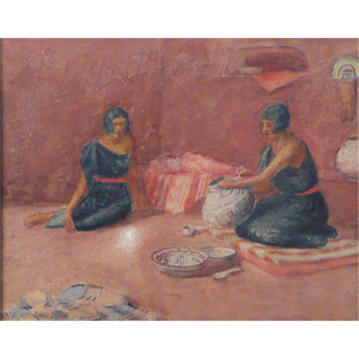 Frank Reed Whiteside (1866-1929) Watercolor/Gouache Female Native American potters Estate stamp Verso 9 1/2" x 11 1/2"
