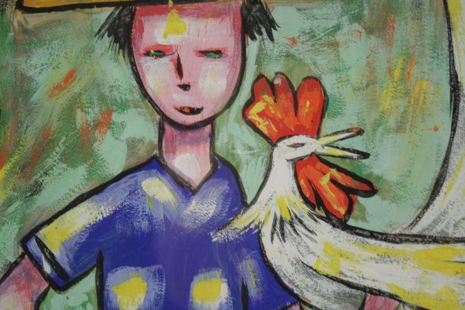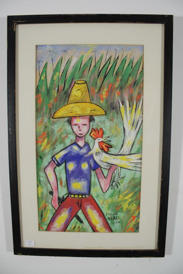 Frank Reyes (20th Century) Boy with Chicken, Gouache,