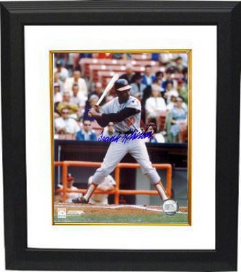Frank Robinson played for 21 seasons in Major League Baseball. He is the only player to win League MVP honors in both the National and American Leagues, won the Triple crown, was a member of two teams that won the World Series (the 1966 and 1970 Baltimore Orioles), and amassed the fourth-most career home runs at the time of his retirement (he is currently seventh). Robinson was elected to the Baseball Hall of Fame in 1982. Frank Robinson has hand autographed this Baltimore Orioles 8x10 Photo. Certificate of Authenticity from Athlon Sports Collectibles. Custom White Mat and Premium Black Color Framed as shown.