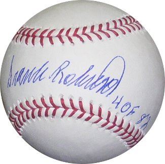 Frank Robinson played for 21 seasons in Major League Baseball. He is the only player to win League MVP honors in both the National and American Leagues, won the Triple crown, was a member of two teams that won the World Series (the 1966 and 1970 Baltimore Orioles), and amassed the fourth-most career home runs at the time of his retirement (he is currently seventh). Robinson was elected to the Baseball Hall of Fame in 1982. Frank Robinson has hand autographed this Official Major League Baseball with HOF 82 Inscription. Leaf Authentics Hologram and Certificate of Authenticity from Athlon Sports.