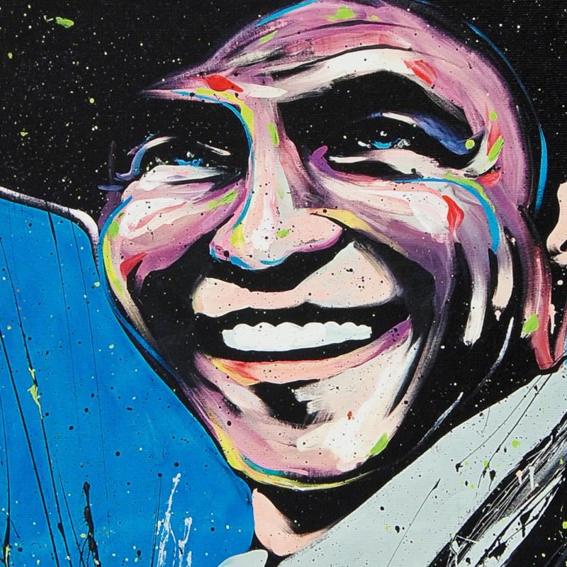 Combining his passions for music and art, David Garibaldi creates stunning visual poetry. "Frank Sinatra (Blue Eyes)" is a limited edition giclee on stretched canvas, AP numbered and bearing the artist's authorized signature. This piece comes gallery wrapped. Includes Certificate of Authenticity! Measures approx. 48" x 48" (image).