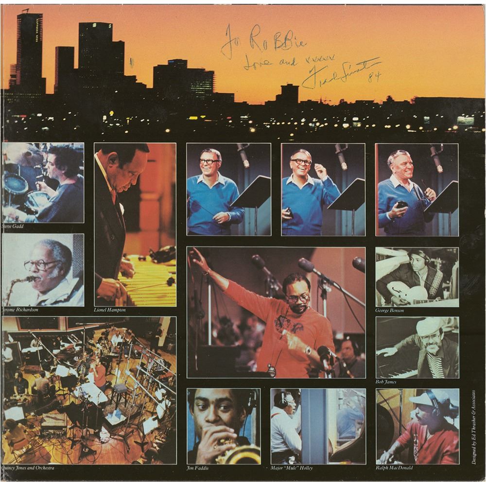 L.A. Is My Lady album signed and inscribed on the inner gatefold in ballpoint, "For Robbie, love and xxxxx, Frank Sinatra, 84." In very good to fine condition, with light scratching to the front cover, light edge wear, and some minor ink adhesion issues. The record is included. L.A. Is My Lady was Sinatra's 57th and final solo studio album.