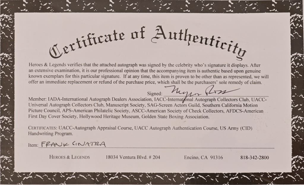 This is Sinatra signed music book autographed by Frank Sinatra.HL8705