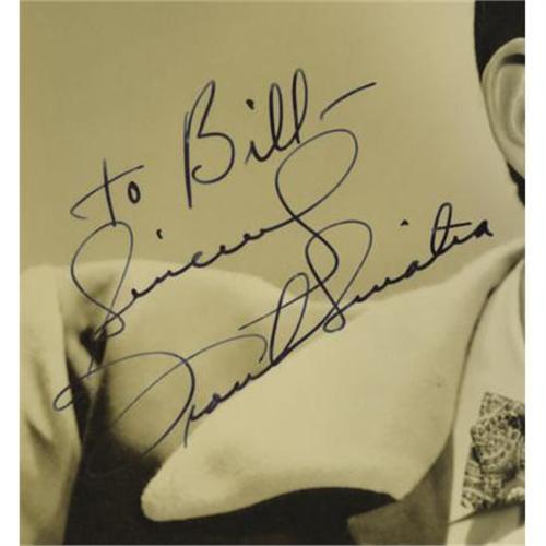 <B>Frank Sinatra Signed Photo.</B></I> A great b&w 8" x 10" photo of a young Sinatra in profile, inscribed and signed by him in black ink. In Very Fine condition with moderate toning and mild wear around the edges. <I>Accompanied by LOA from PSA/DNA.</B></I><BR><BR><b>Shipping:</b> Flat Material, Small (<a target="_blank" href="http://www.heritageauctions.com/common/shipping.php">view shipping information</a>)