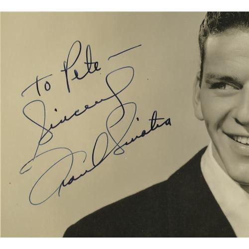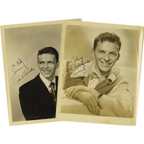<B>Two Vintage Frank Sinatra Signed Photos.</B></I> A pair of b&w 8" x 10" photos of Sinatra as a young singer, both inscribed and signed by him in black ink. In overall Fine to Very Fine condition with mild to moderate wear and tanning and some creases.<I>Accompanied by LOA from PSA/DNA.</B></I><BR><BR><b>Shipping:</b> Small Flat (<a target="_blank" href="http://www.heritageauctions.com/common/shipping.php">view shipping information</a>) <BR><BR><B>Important notice